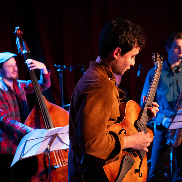 SH Group is a Brussels-based jazz quintet drawing inspiration from jazz, rock, and pop. The ensemble—Vlad Tolordava (trumpet), Jonas Le Roy (saxophone), Matteo Di Leonardo (guitar), Niklas von Werne (drums), and Sébastien Hugue (double bass)—focuses on sound, emotion, and playfulness in their performances. Their music radiates openness, shared energy, and human feeling, free from rigid traditions. Since their 2020 debut EP, they have performed regularly in Belgium, France, and beyond. Their latest 2026 album explores deep emotions and life moments with a poetic and accessible touch.