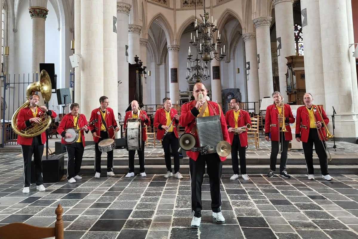 Red Jackets Jazzband brings New Orleans street jazz the way it should be. That means with red jackets, banjo, washboard and tons of playing fun. The intergenerational troupe from Bergen op Zoom enthusiastically performs traditionals and classics with an edge. Folk jazz that swings and connects, walking among the people on the street.
