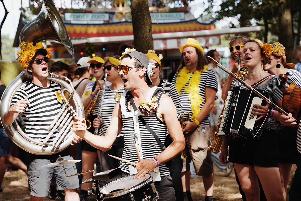 Café Marché is a colourful striped Brussels fanfare / ambiance orchestra, consisting of about thirty enthusiastic musicians and a range of varied instruments. Their versatile repertoire provides the necessary ambiance and ensures that the audience gets moving!